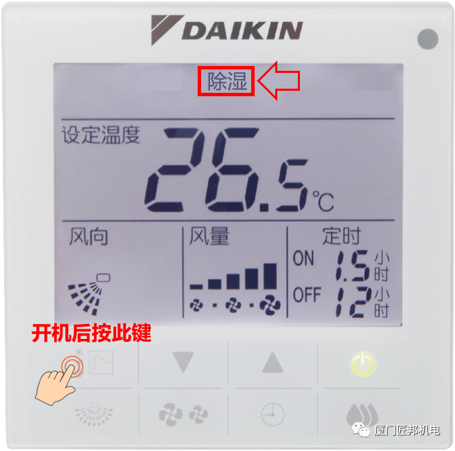 2.当气温高于16℃时,开启空调的除湿模式(操作页面如下),通过强力除湿解决室内高湿度的问题: