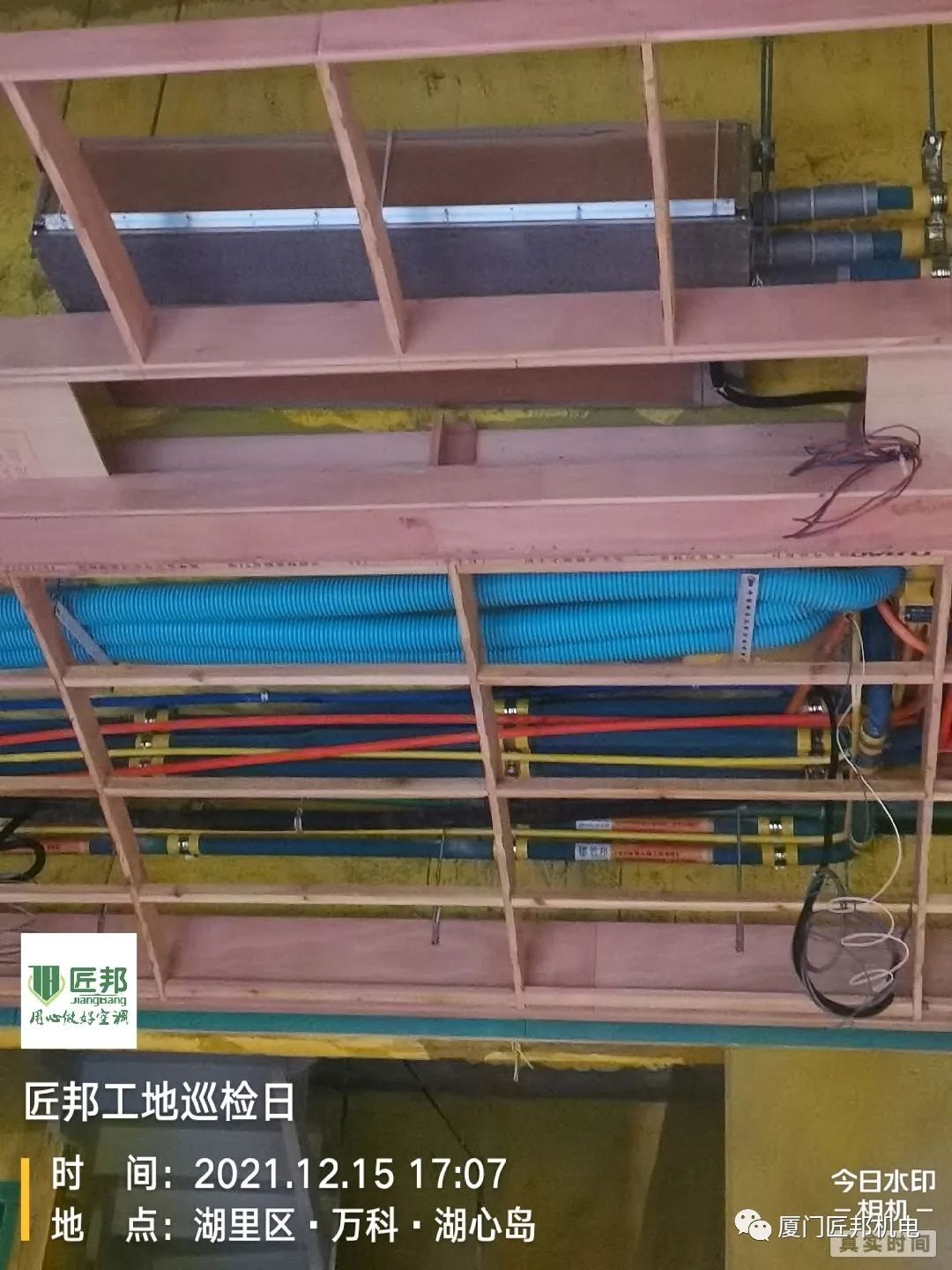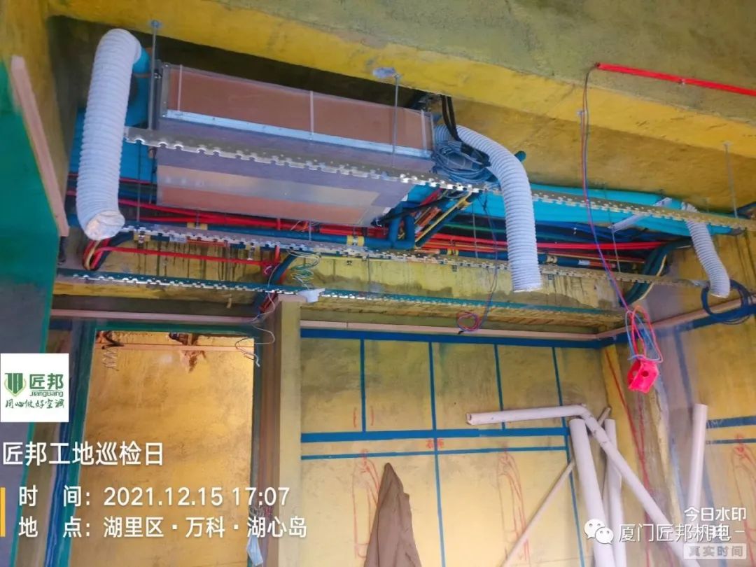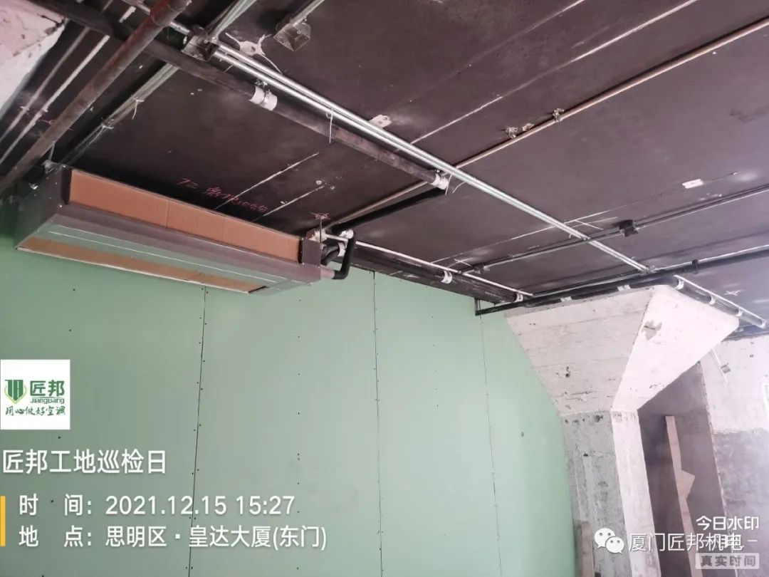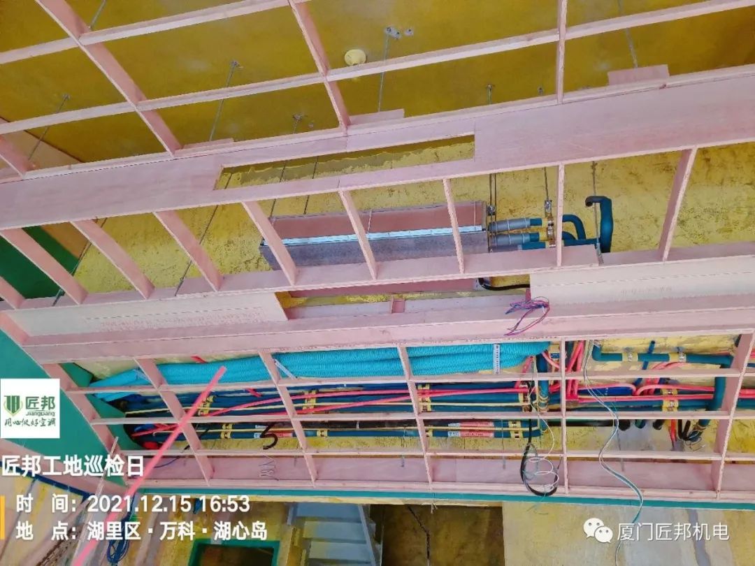 现场已进入木作施工阶段,为避免后期空调出现风口被遮挡,出风面积不足,风口滴水等情况,在木作进场时一定要和木工交接清楚空调的开口尺寸,确保开口满足空调的出、回风要求。