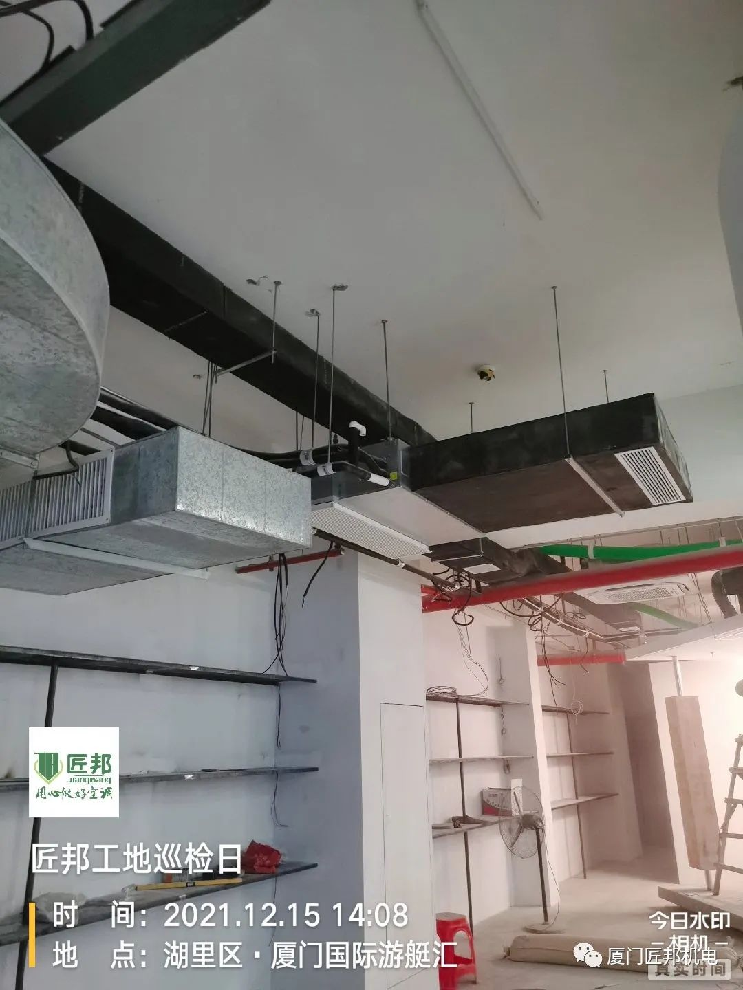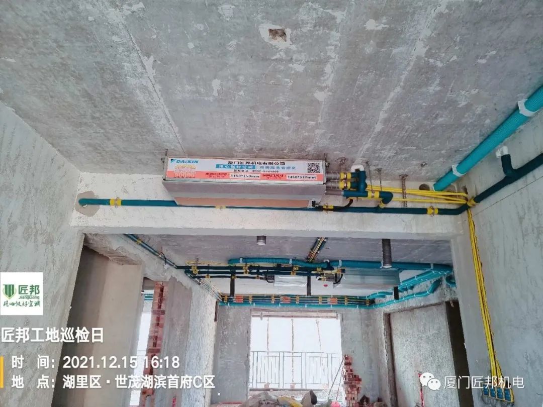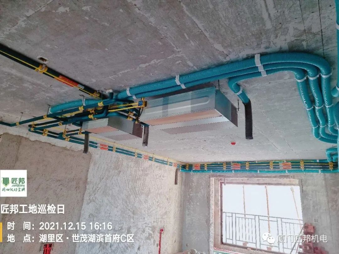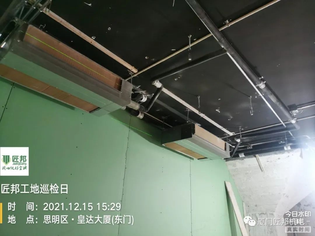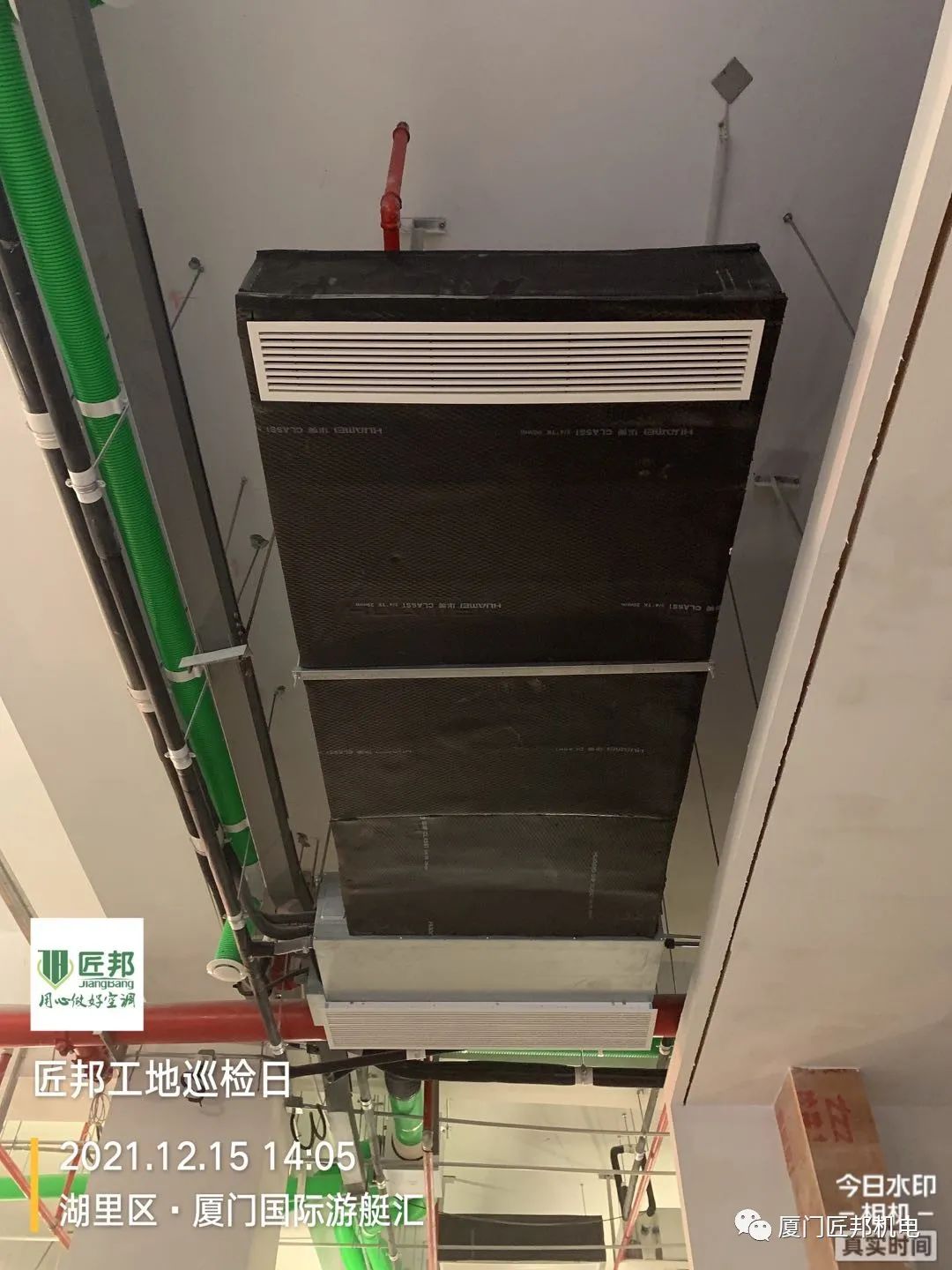 现场已进入木作施工阶段,为避免后期空调出现风口被遮挡,出风面积不足,风口滴水等情况,在木作进场时一定要和木工交接清楚空调的开口尺寸,确保开口满足空调的出、回风要求。