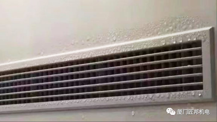 送风口开太小,冷气就会积压在风口内部吹不出去,导致出风口处温度越来越低,一不留神就开始结小水滴了。☟