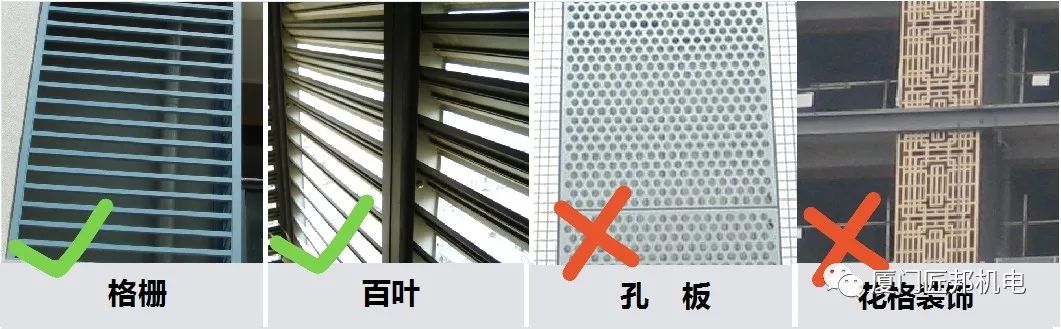 如果是外立面有装饰要求的话,那么小狮子建议采用宽间距的格栅来确保空调的散热效果,千万别去选一些类似孔板或者花格类中看不中用的装饰。