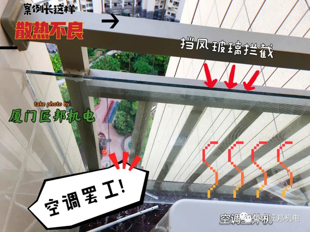 可不曾想到这位业主因为担心外机长期风吹雨淋会生锈坏掉,所以特地找人在外机前面加装了一块挡风玻璃。